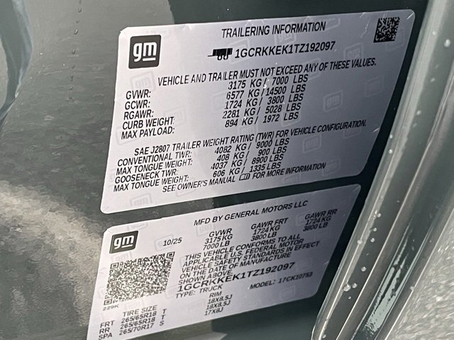 • VIN # 1GCRKKEK1TZ192097