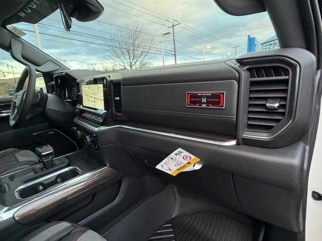 Inside, the cabin is loaded with premium features and advanced technology including the 13.4 inch touchscreen with Google Built In, wireless Apple CarPlay and Android Auto, 12.3 inch digital driver display, Bose premium sound system, remote start, keyless entry, power sunroof, and dual zone climate control. Black Widow exclusive leather seating with custom stitching, embroidered headrests, and premium floor mats complete the upscale interior.