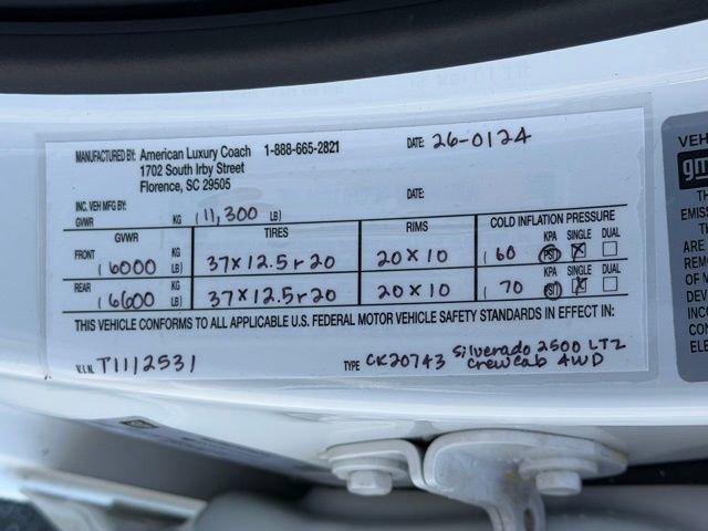 If you want a diesel HD lifted truck that can actually do the work, turn heads everywhere it goes, and is backed by a real warranty from American Luxury Coach, this ALC Z92 Silverado 2500HD is as bad ass as it gets. Price includes: $1000 - Chevrolet Consumer Cash Program. Exp. 04/30/2026