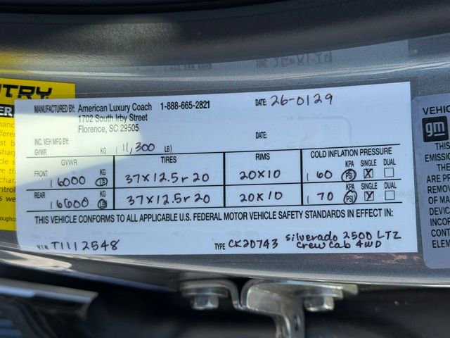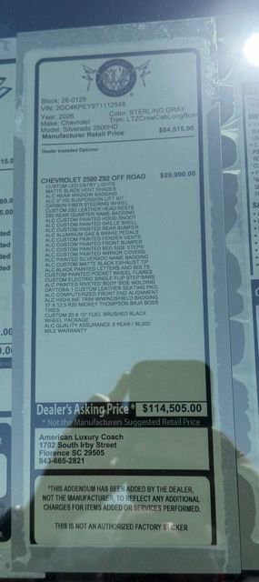 If you want a diesel HD lifted truck that can actually do the work, turn heads everywhere it goes, and is backed by a real warranty from American Luxury Coach, this ALC Z92 Silverado 2500HD is as bad ass as it gets. Price includes: $1000 - Chevrolet Consumer Cash Program. Exp. 04/30/2026