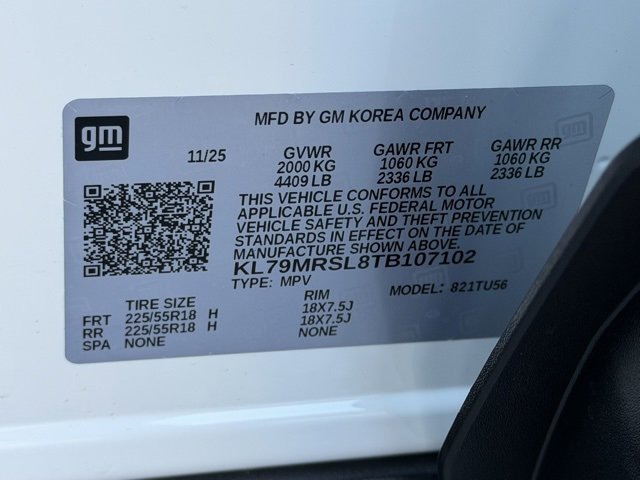 • VIN # KL79MRSL8TB107102