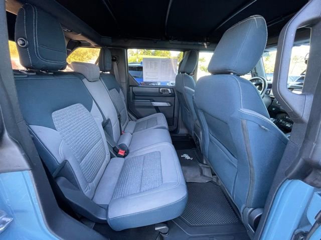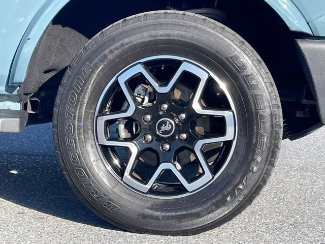 Exterior features reinforce the Broncos bold design and trail-ready capability, including aluminum wheels, removable doors and roof panels, LED lighting, all-terrain tires, and iconic Bronco styling that stands out everywhere it goes.