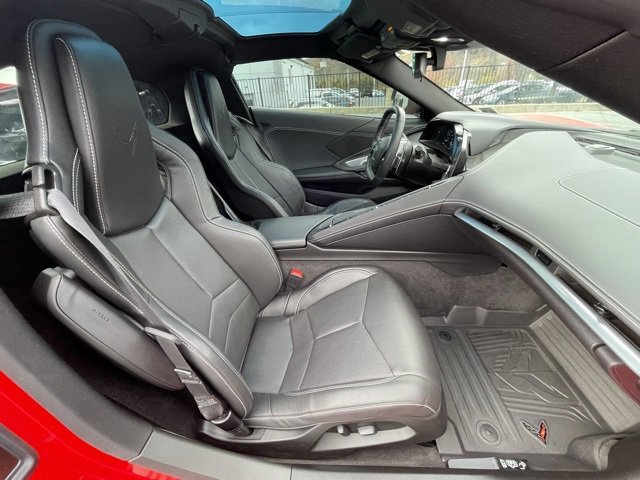 This CarBravo Certified 2023 Chevrolet Corvette Stingray Coupe 1LT delivers breathtaking mid-engine performance, iconic Corvette styling, and modern connectivity in a driver-focused sports car. Finished in Torch Red with a refined Jet Black interior, this Stingray commands attention with its sculpted aerodynamics, LED lighting, and aggressive stance. Power comes from the legendary 6.2L LT2 V8, paired with a lightning-fast 8-speed dual-clutch transmission, offering precise shifts and incredible responsiveness. The removable transparent roof panel adds open-air excitement, while 8-way power GT bucket seats, dual-zone climate control, and leather seating surfaces elevate cabin comfort. The Chevrolet Infotainment 3 Plus system features an 8-inch HD touchscreen, Bose 10-speaker audio, in-vehicle apps, and wireless Apple CarPlay and Android Auto, enabling seamless access to navigation, music, messages, and hands-free calling. With optional upgrades like the High Wing Spoiler, Stingray R Appearance Package, forged aluminum wheels, and Performance Data Recorder, this Corvette Stingray 1LT blends racing heritage with everyday drivability in a thrilling package.